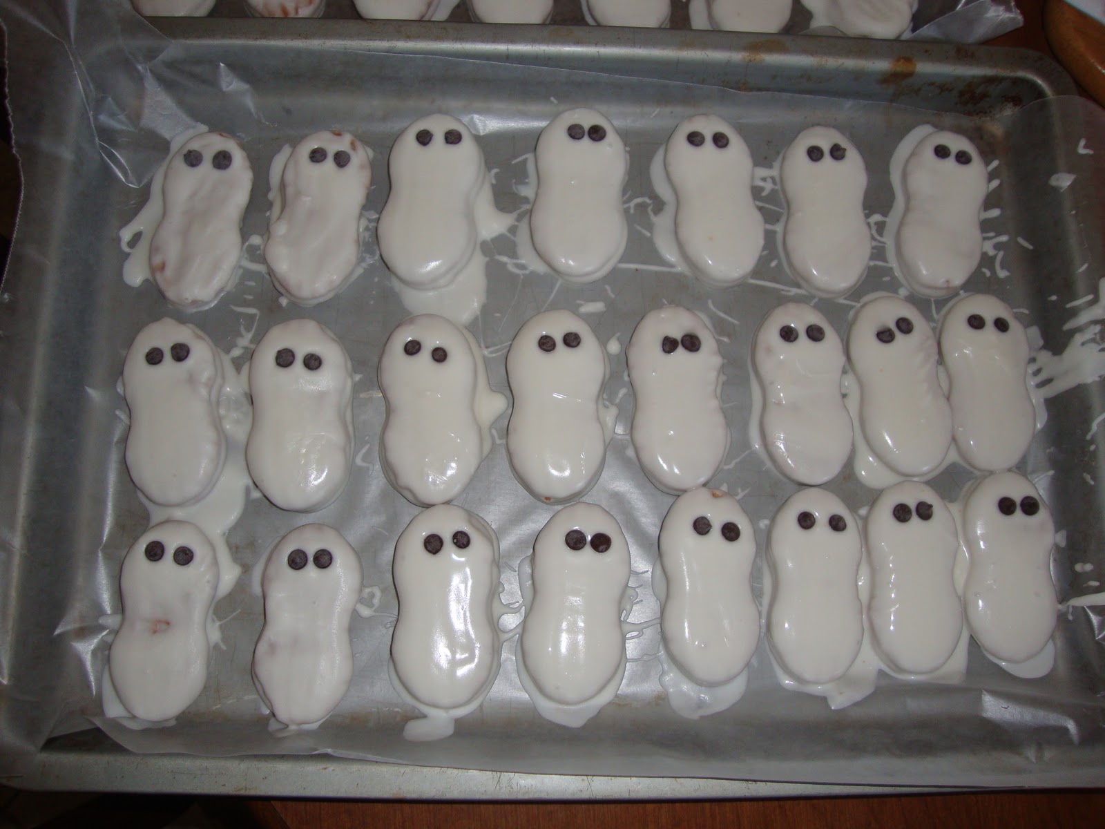 The first are ghost cookies. You need a package of Nutter Butter cookies.