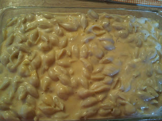And then mix the cheese mixture and pasta together. Put into a greased 9×9 pan. I actually made a bit more pasta and used a 9×13 pan. Bake uncovered at 350 degrees for 30 minutes. Oh was this good!